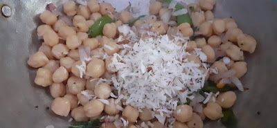 6.Add in 2 cups Cooked Chickpeas and Grated Coconut and Mix.