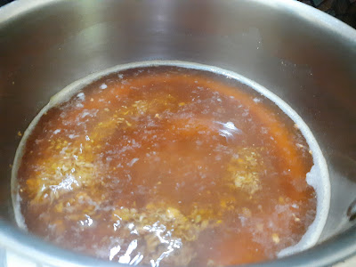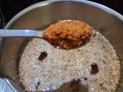 - Then add Jaggery Powder/Palm Jaggery/Brown Sugar and allow it to boil for 20 Mins(till its raw smell goes) and Mix in between.