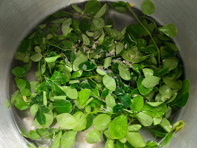 Add Drumstick leaves in a pressure cooker with 2 cups water.Further add turmeric powder and salt.