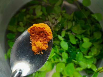 - Then add 1/4 tsp Turmeric Powder and needed Salt.