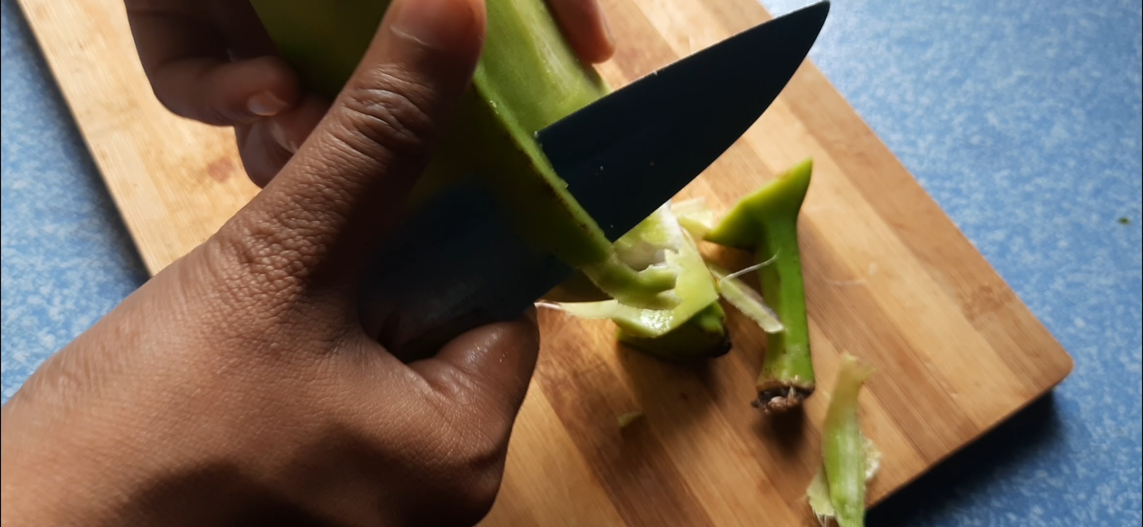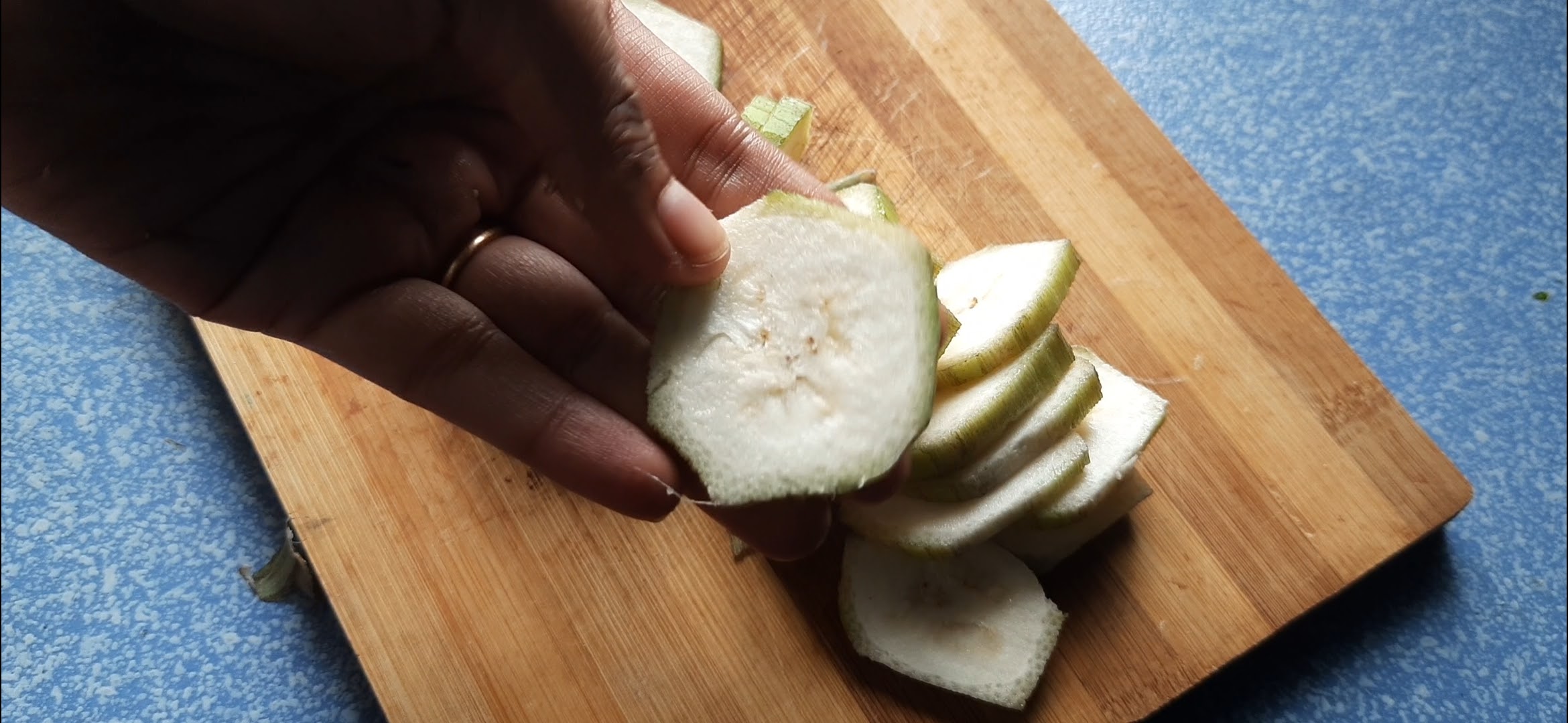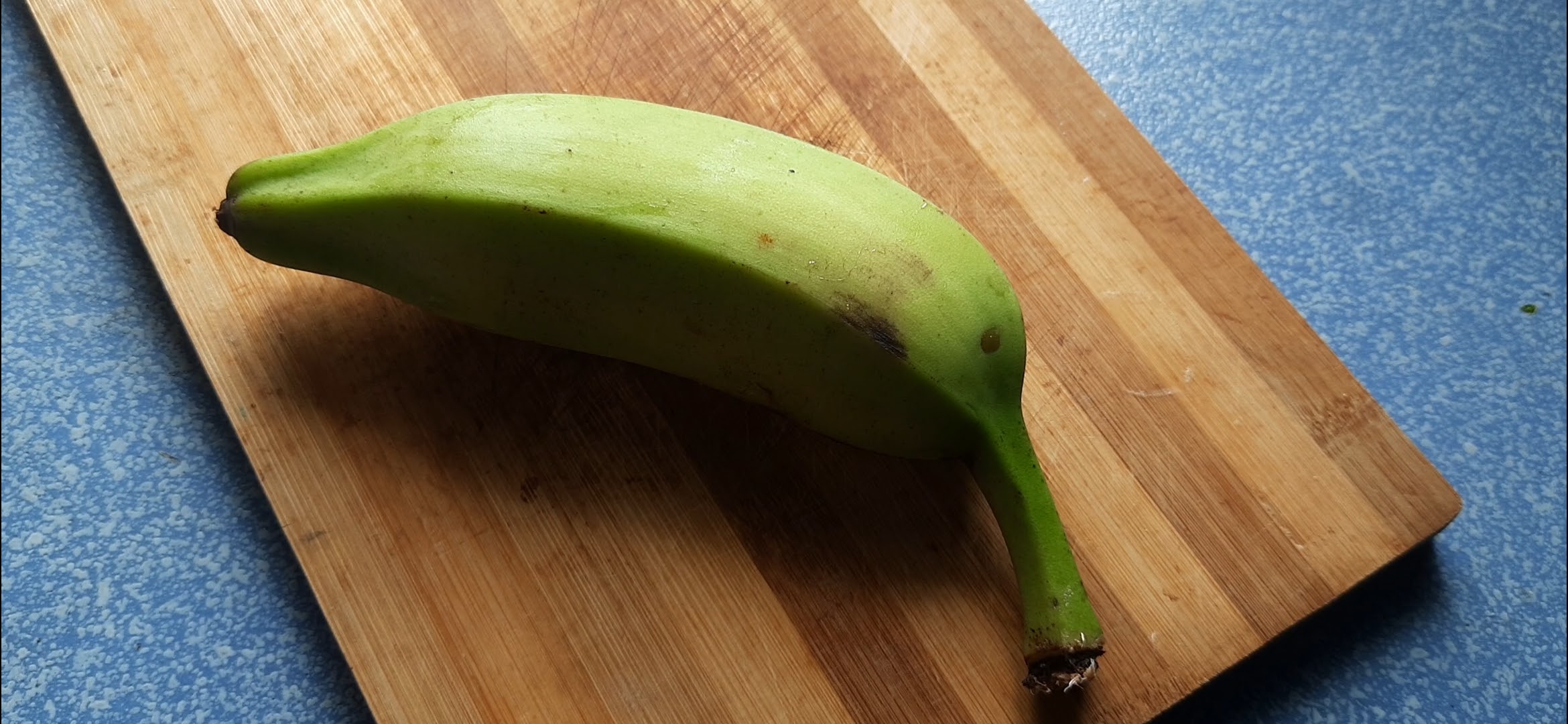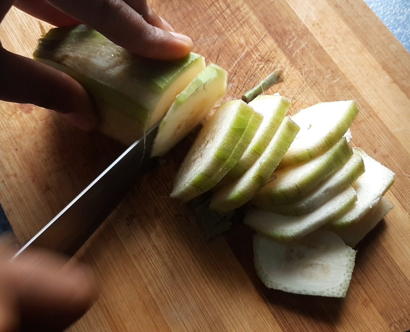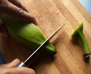Cut the corners of raw banana and slice it.you can also cut into cubes.