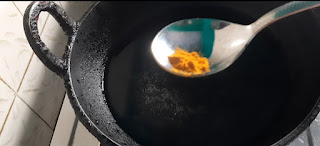 - Heat water in kadai and add 1/4 tsp Turmeric Powder.