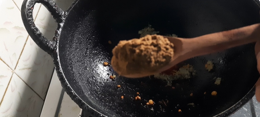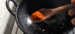 - Add Chili Powder,Curry Powder and saute till raw smell goes off.