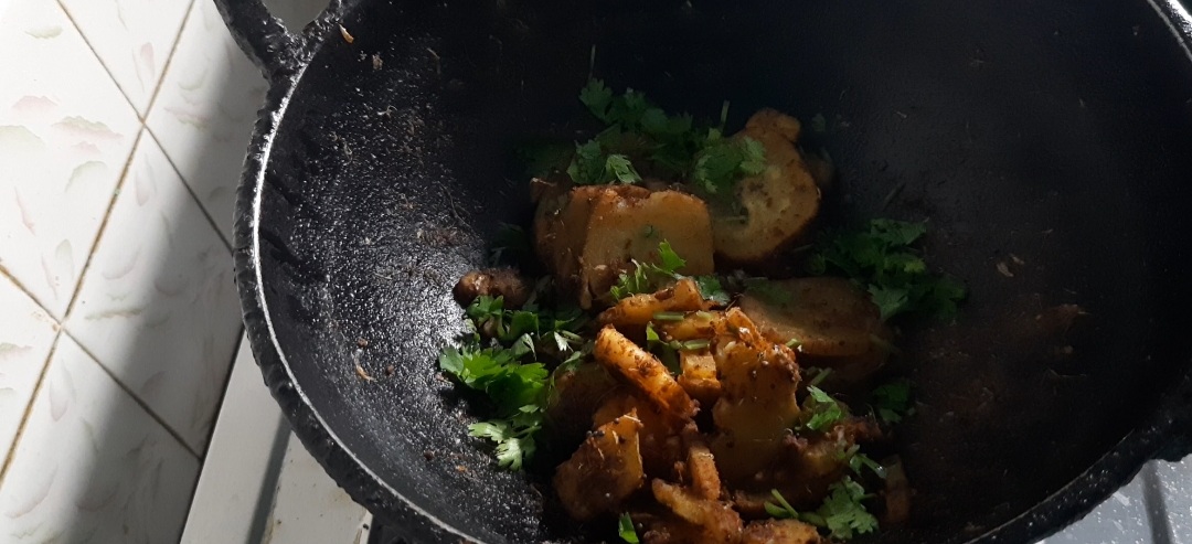 Add cooked raw banana and needed salt and saute for 2 mins in medium flame.finally garnish with chopped coriander leaves and switch off.
