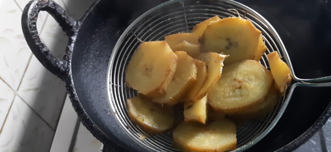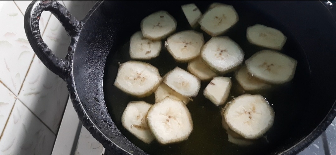 Add the banana pieces in water with turmerric powder and boil till it becomes soft.