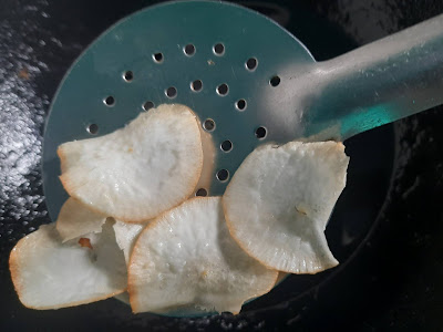 • If you are using slicer you can straightly slice into hot Oil.