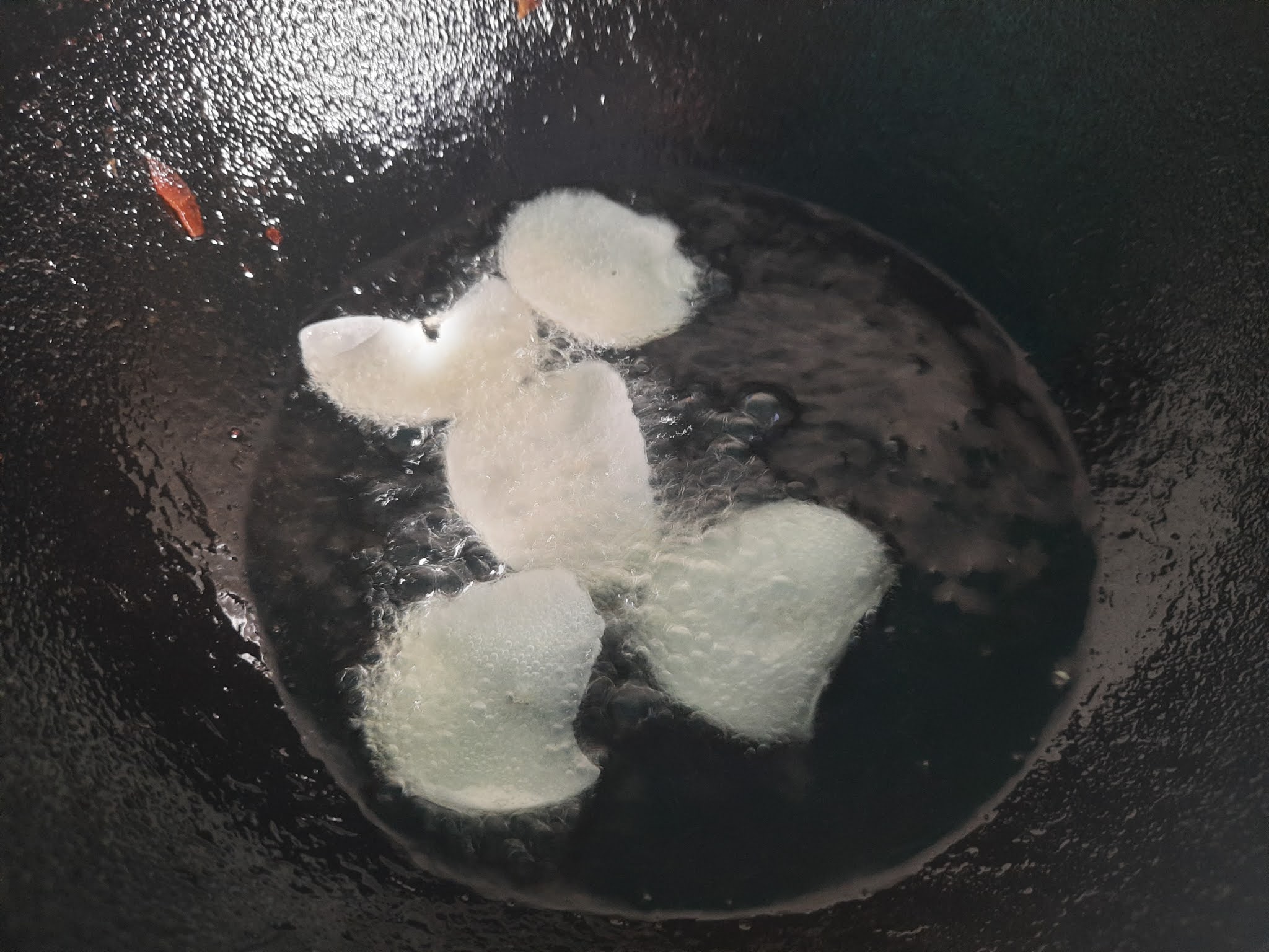 • Once the Oil is hot drop the Sliced Pieces.