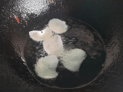 5.Once the Oil is hot drop the Sliced Pieces.