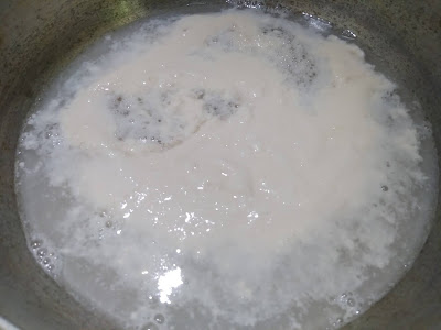 - Heat a Heavy based and Wide Kadai and add Urad dal Paste and 1 lt Water.