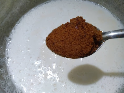 5.After 10 mins of Stirring add Sugar or Jaggery and Mix Continuously.